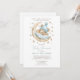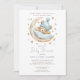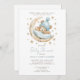 Smaklig enkel vattenfärg, sovande nalle måne och stjärnor, inbjudan till babydusch, i gröntens nyanser och brunt. Färgad blå och brun text. Finns i utskrift, som en digital nedladdning, eller både och!
