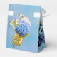 Skuggor med blå vattenfärg Hydrangeas & bronze löv bröllop tema, vissa med guld geometriska ram-beslag för att anpassa sig. Denna moderna stationära och party-utformning är perfekt för alla utomhusmiljöer firande i en sommarträdgård som för bröllop.
