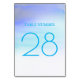 Mjukt blått och turkos ombre vattenfärgsdekorat bordsnummer elegant bröllop