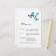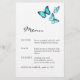 Blåfärgade vackra fjärilar. Menyn snyggt finare bröllop.