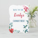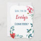 Frieri för en blivande gudmor i form av ett speciellt visitkort. Visa henne hur viktigt det här elaket är för familjen med ett kort som har ord inuti "Det skulle vara en ära för dig att vara en del av familjen! Anpassa kortet med din egen ord och behålla som det är och ändra bara barnets namn på framsidan och familjens namn på insidan av kortet. Du kan till och med byta till en gudfader eller en gudförälder frieri. Ett enkelt kort för elegant med vattenfärgsanläggningar för blå och röd blommigt som är med den blivande gudföräldern.