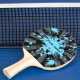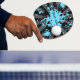 En pingpongpaddel för att anpassa dig med ditt namn i en blå stänk-design på svart och grått rand.