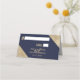 Elegant, chic och glamorösa faux tryckta guld-glitter-sekvinhörnen och guld-skript på en marin blå bakgrund, placera kort. Denna klassiska och sofistikerade utformning är perfekt för alla snyggtar och trendig, inklusive bröllop och dagligt tillfälle. Anpassa med ditt eget meddelande på framsidan och en anpassad inledande monogram på baksidan. All fotoutskriftsdesign.