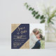 Elegant, chic och glamorösa faux tryckta guld glitter-sekvinhörnen och guld-skript på marinblå bakgrund, Spara-till-datum-bröllop-vykort. Denna klassiska och sofistikerade utformning är perfekt för det trendig och det snyggt som gifter sig. Anpassa med ditt eget meddelande på framsidan och en anpassad inledande monogram på baksidan. All fotoutskriftsdesign.