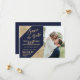 Elegant, chic och glamorösa faux tryckta guld glitter-sekvinhörnen och guld-skript på marinblå bakgrund, Spara-the-Date bröllop-kort. Denna klassiska och sofistikerade utformning är perfekt för det trendig och det snyggt som gifter sig. Anpassa med ditt eget meddelande och fotografi på framsidan och en anpassad monogramstart på baksidan. All fotoutskriftsdesign.