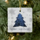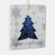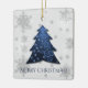 Dekorera träd i julhelg med en blå prydnad för Julgran-keramiskt julnamn. Utformningen av prydnadsföremål har ett vibrerande och festligt Julgran, med nedfallande grått och vitt snöflingor med Julhälsningar. Ytterligare presentartiklar och helgdag som är tillgängliga med den här designen också.