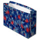 En flock söta små röda fåglar - tjurar - i frusen skog, träd grenar med bär som bakgrund, blått, rött och grått färg. En vacker gåva till barnen eller naturen älskare passar perfekt som förskolsdeka. Fiberkonst, ullmålning, nål och blöt-filtning © Clipso-Callipso / Julia Khoroshikh
