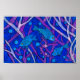 Poster med kollage-teckningar som visar vatten-djur - tre blåa fiskar i sjögräs. Vävnadspapper, markörer och bläck-penna. Fairytale illustration, undervattens-/nautiska tema, tecknad stil. Det här poster underbaren för förskolor eller barnrum. © Clipso-Callipso / Julia Khoroshikh www.juliakhoroshikh.art #underwater art #fishart #paper collage #collageart #zazzazzle #zazzlemade #nauticaldecor #wallart #poster