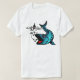 Roligt tecknad av blåfisk som ska till bita en mask som hänger av krok och en röd och svart flyt.