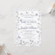 Dusty Blue Vattencolor Butterlies med vilda blommor faller blommigten av en pojkbabyduschinbjudan. Blå elegant, små blommor pojke dusch.
