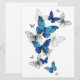 Flygande blå Butterflies morpho och vita fjärilar på en ljus abstrakt bakgrund. Morpho. Design med blå fjärilar morfin.