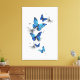 Flygande blå Butterflies morpho och vita fjärilar på en ljus abstrakt bakgrund. Morpho. Design med blå fjärilar morfin.