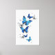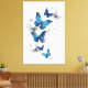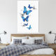 Flygande blå Butterflies morpho och vita fjärilar på en ljus abstrakt bakgrund. Morpho. Design med blå fjärilar morfin.
