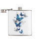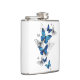Flygande blå Butterflies morpho och vita fjärilar på en ljus abstrakt bakgrund. Morpho. Design med blå fjärilar morfin.