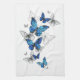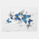 Flygande blå Butterflies morpho och vita fjärilar på en ljus abstrakt bakgrund. Morpho. Design med blå fjärilar morfin.