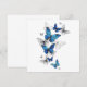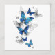 Flygande blå Butterflies morpho och vita fjärilar på en ljus abstrakt bakgrund. Morpho. Design med blå fjärilar morfin.