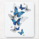 Flygande blå Butterflies morpho och vita fjärilar på en ljus abstrakt bakgrund. Morpho. Design med blå fjärilar morfin.