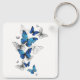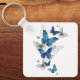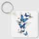 Flygande blå Butterflies morpho och vita fjärilar på en ljus abstrakt bakgrund. Morpho. Design med blå fjärilar morfin.