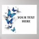 Flygande blå Butterflies morpho och vita fjärilar på en ljus abstrakt bakgrund. Morpho. Design med blå fjärilar morfin.
