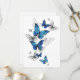Flygande blå Butterflies morpho och vita fjärilar på en ljus abstrakt bakgrund. Morpho. Design med blå fjärilar morfin.