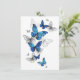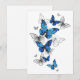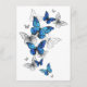 Flygande blå Butterflies morpho och vita fjärilar på en ljus abstrakt bakgrund. Morpho. Design med blå fjärilar morfin.