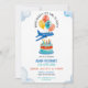 En charmig design med ett blått vattenfärgat flygplan som följer färgfulla ballonger, omgivna av mjuka moln, med en fin födelsedagskalas som är kapslad nedan.
