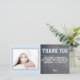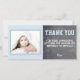 Tack för att du fick ett kort för att tacka dina gäster. Anpassa kortet med ditt foto och namn. Du kan också ändra tacktexten och skriva din egen. Texten är i blått och vitt färg. Bakgrunden är ett modernt grått-krita struktur och pastellblått.