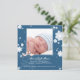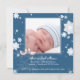 Späd lilla fåglar och vackra blommor och snöflingor designade på anpassningsbar Pojke Photo Tillkännagivande för födelse. All text är helt anpassade och det är mycket enkelt att ändra textens text, teckensnitt, färg och storlek.