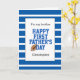 Det här är ett första Fars dag-kort för min bror, som kan vara personlig på framsidan med namn. Detta fotbollskort Fars dag är en perfekt för fotbollsspelarna pappor, fotbollsspelare, fotbollsspelare, etc. Insidan av det här Fars dag-kortet från Lycklig läser ett ljuvt budskap som man lätt kan personalisera om man vill. Baksidan är en fotboll med en strimlad blå med en ställe som du kan anpassa till året. Det skulle göra honom till en unik keepy.