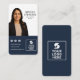 Visa dig på den verkliga gods-marknaden med det här marinblåa affärskortet som innehåller ditt foto, din logotyp för anpassningsbar och din eleganta professionell i porträtt. Designad för äkta gods agent och mäklare, framhäver den här moderna designen ditt personliga varumärke samtidigt som man bygger förtroendet för kunder. Fullständigt anpassade med ditt namn, din mäklarverksamhet, kontaktinformation och social-medieikoner - perfekt för nätverk och lämnande av ett varaktigt intryck.