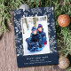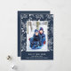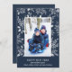 Gott nytt år med vita bär, löv och prickar på en marin blå bakgrund visar ditt favoritfoto med namn och hälsning i chicen vid grund.