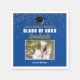 Den moderna pappra blöjan med blå och guld-anpassningsbar har klassvit typografi och chic-konfetti från högskolan i namn för 2025 års klass och vit Varsity brev över ditt överordnade foto. Anpassa med ditt student namn under handskrivet skript i chicen och hylsa för underbar firande-dekorfärg med ditt fotografi.