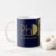 Ett PhD studenten mugg med en (icke-folie) guld glitter och blå design. Anpassa helt enkelt med student namn, lägg till mugg i din vagn och fira denna stora prestation. Blåfoto PhD Studenten Kaffe Mugg Holiday Design guld | ©Melissa Patton - Designer