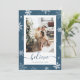 Magiskt blått helgdag med snöflingor, stjärnor och snöfall på blå bakgrund. Anpassa enkelt det här helgdag med ditt foto och din text.