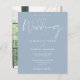 Den här eleganten är en dammig inbjudan till ett blått bröllop som kan vara personlig med din information i chicens typografi med ditt speciella foto på motsatt sida. Designad av Thisisnotme©