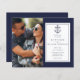 Den här chicen nautiska bröllopsinbjudan för marinblått budgetbröllop kan vara personlig med dina speciella foto- och speciella bröllopsdagar. Designad av Thisisnotme©