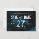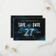 För paret vars kärlek-historia är skriven bland stjärnorna...Ett galaxistiskt temat bröllop spara datum-kort kommer säkert att fånga allas öga! Textdetaljer är anpassade och ligger över en blankstegsbakgrund i svart, blå och vitt.