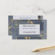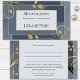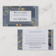 Professionell affärschkort med modern design med virvlande gyllene blad på en blågrå geometrisk bakgrund. Ett vackert visitkort för alla proffs som söker elegans.