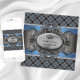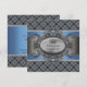 Blå och grå kartrad inbjudan till babyfest. Denna söta svarta, grå och blå inbjudan till babyfest kan enkelt anpassas för ditt evenemang genom att helt enkelt lägga till dina evenemangsuppgifter, typsnitt, teckenstorlek och färg samt formulering.