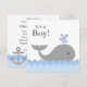 En förtjusande blå och grå val baby shower inbjudan har en söt blå våg och grå val på framsidan och baksidan med ett ankare på baksidan. Lägg till dina detaljer på framsidan och/eller baksidan genom att lägga till dina evenemangsuppgifter, typsnitt, teckenstorlek och färg samt formulering.
