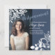 Oväntatade ändringar av datum kan hända. Skicka dina förstående gäster ett blågrått uppskjutande eller ändra datum-kort, och låt dem veta att en formell inbjudan kommer att följa! Vit spetsram kommer att visa ditt foto vackert. Dessa meddelandekort för uppskjutande är charmiga med koordinerad brevpapper och partidetajer. Anpassa enkelt detta kort för en Bat Mitzvah, Quinceanera, tonårsfödelsedag, bröllop, examen eller årsdag som måste skjutas upp.