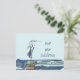 Blåhäger Vattenfront Modernt Skript Ny adress... En stor blåhäger står på bryggan vid ditt vattenfrontshus och informerar vänner och familj om att du har flyttat till södern... till exempel Florida. Din anmälan på framsidan av kortet lyder "Vår nya adress" i gemen skrifttypografi. All exempeltext på fram- och baksidan av kortet kan enkelt revideras med din personliga hälsning och kontaktinformation.
