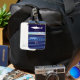 Ett mönster med olika blått rand med en vit hajbild, för att anpassa sig till namn
