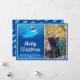 Ett platt julfotoport med blått, tecknad, haj i en julhatt. Alla ord kan anpassas. <i>Fotografi © Storytree Studios, Stanford, CA</i>