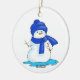 Blåhatt och halsduk i personlig snögubbe julgransprydnad keramik