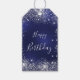För en giftig och glamorös födelsedagsfest (eller någon ålder). En marin blå bakgrund med elegant faux silver damm. På framsidan: Grattis på födelsedagen Tillbaka: Din anteckning och namn Användor en generisk text så att du kan använda den för flera födelsedag