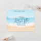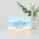 Vackra vattenfärgsbilder med blått och tealhav vågar på en sandstrand, inbjudningar till bröllopsinbjudningar.
