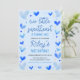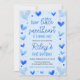 Vår lilla 1:a födelsedag-inbjudan med ett vackert blått hjärtetema.
