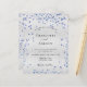 En modern, elegant och minimalistisk bröllopsinbjudan. Faux silver metallisk tittar bakgrund dekorerad med små marinblå hjärtan. Anpassa och lägg till information om namn och bröllop. Svart färgad brev. 1 lakan = 1 inbjudan tryckt kant till kant.