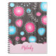 Blåhjärtan och blommor i rosa blommigt namn anteckningsbok